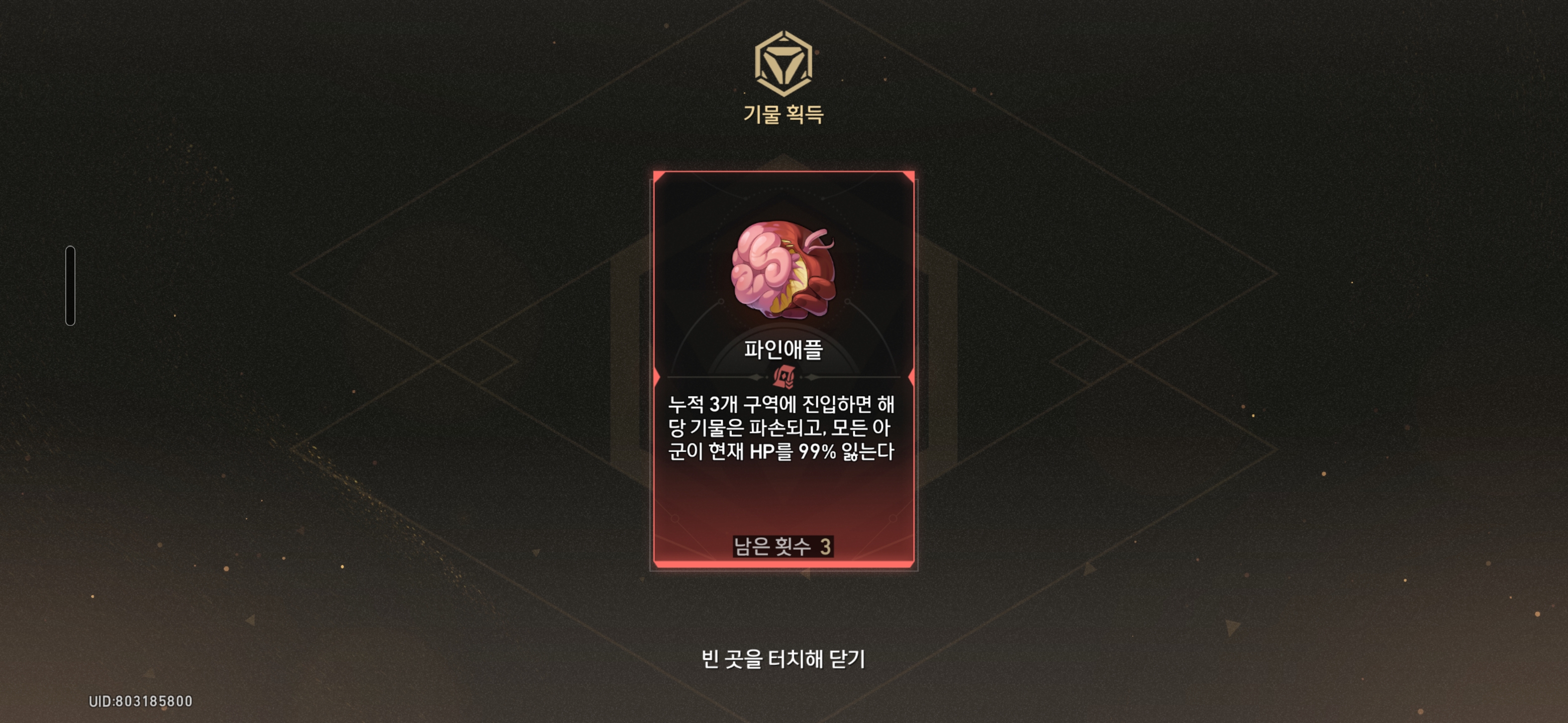 파인애플을 선택한다 - 랜덤 축복 3개를 획득하고 디버프 기물 파인애플을 획득한다
