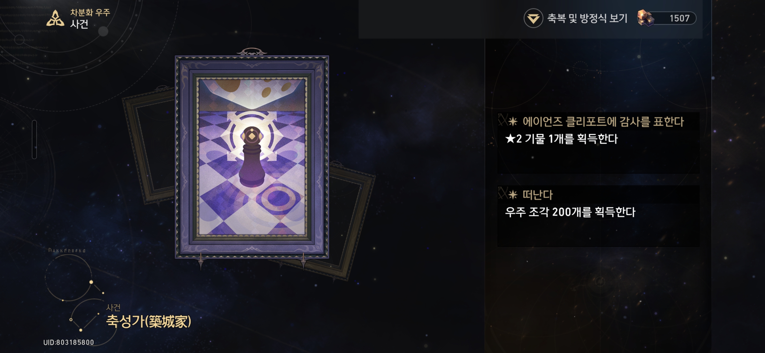 떠난다 - 우주 조각 200개를 획득한다